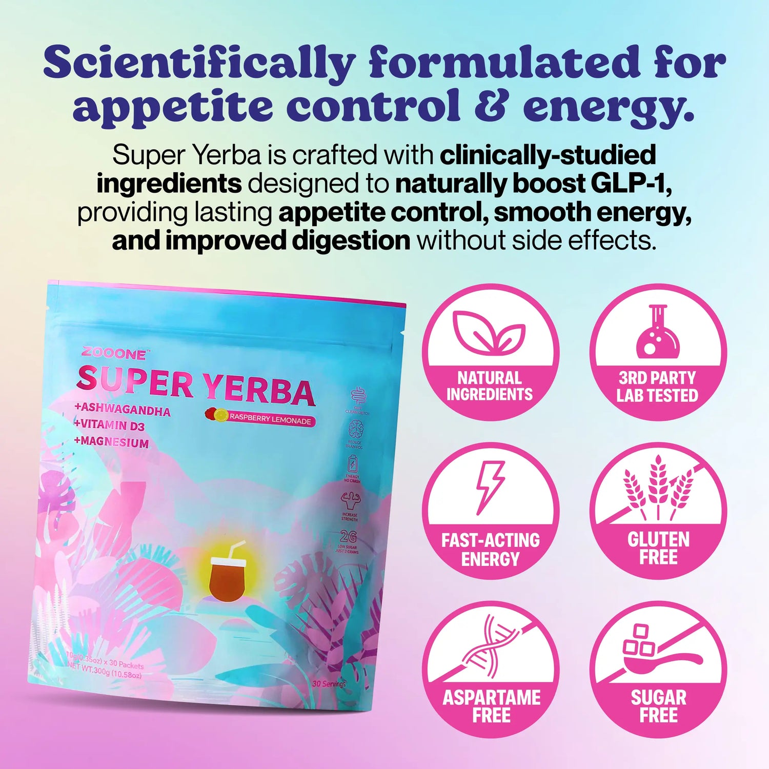 Unlike typical Yerba blends, Super Yerba is 100% natural, no sugar, no fillers, and no artificial ingredients. It’s also infused with Ashwagandha and more proven ingredients, which works synergistically to boost GLP-1 release even further. This powerful combination helps you see fast and effective results—naturally and without any side effects.
